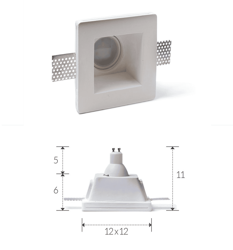 LG SPOT GIPSI është një trup ndriçues inkaso me formë katrore, i projektuar për instalim në tavan gipsi, duke ofruar një zgjidhje moderne dhe estetike për ndriçim të brendshëm. Materiali prej allçie siguron një përfundim të pastër dhe mund të lyhet sipas ambientit për një integrim të plotë vizual.