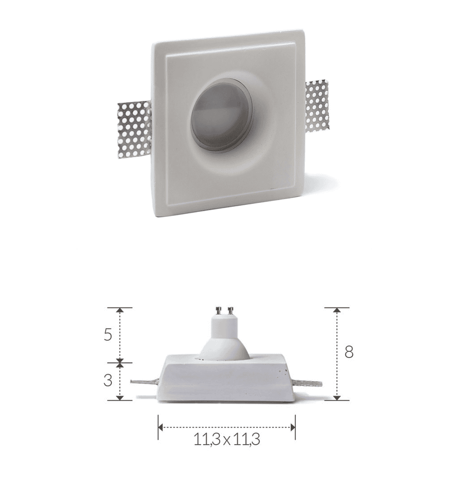 ALG SPOT GIPSI është një trup ndriçues inkaso me formë katrore, i projektuar për instalim në tavan gipsi, duke ofruar një zgjidhje moderne dhe estetike për ndriçim të brendshëm. Materiali prej allçie siguron një përfundim të pastër dhe mund të lyhet sipas ambientit për një integrim perfekt vizual.